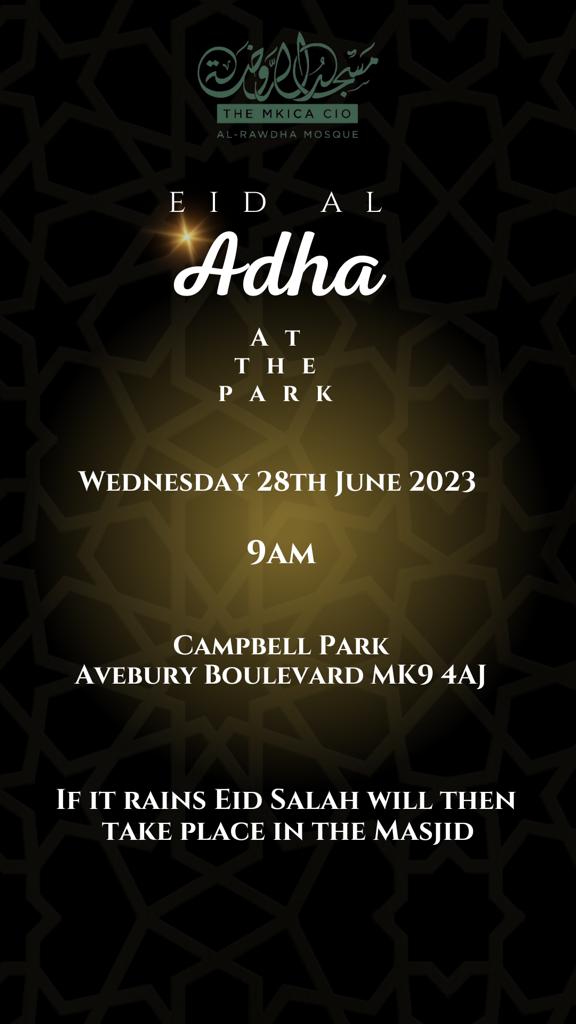 Eid al-Adha 2023 will be, Wednesday 28th June, in shaa Allah.